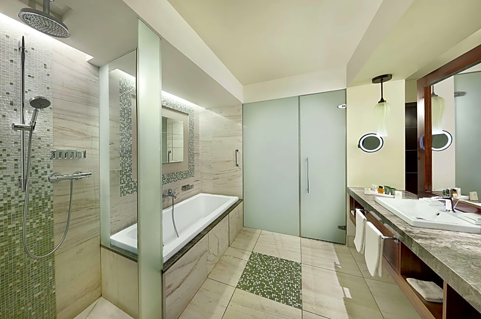Includes executive lounge access with breakfast and a variety of hot, cold, sweet, savory and selection of refreshments. The bathroom includes toiletries and a hairdryer.
